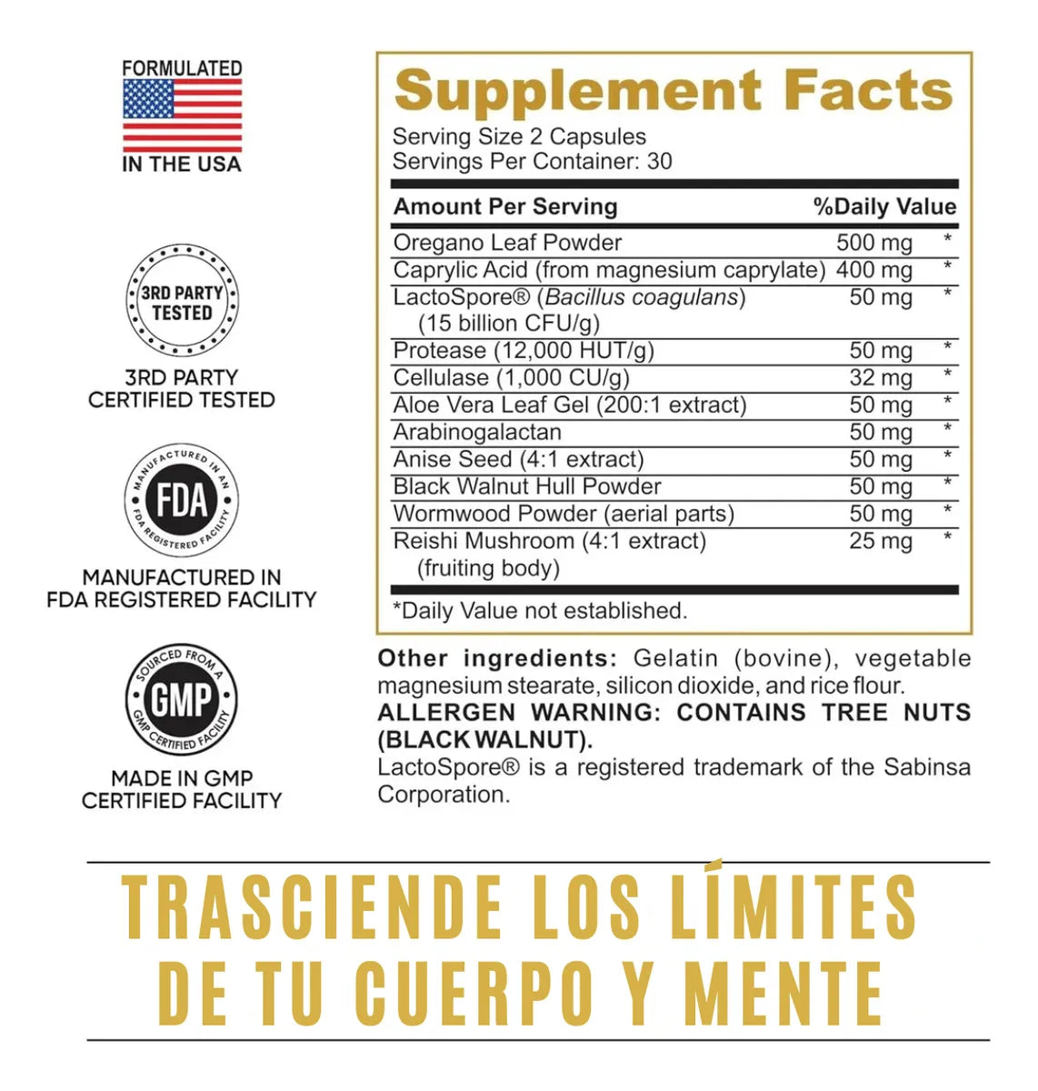 - Equilibra la flora intestinal → Controla el crecimiento excesivo de Candida y promueve bacterias buenas.